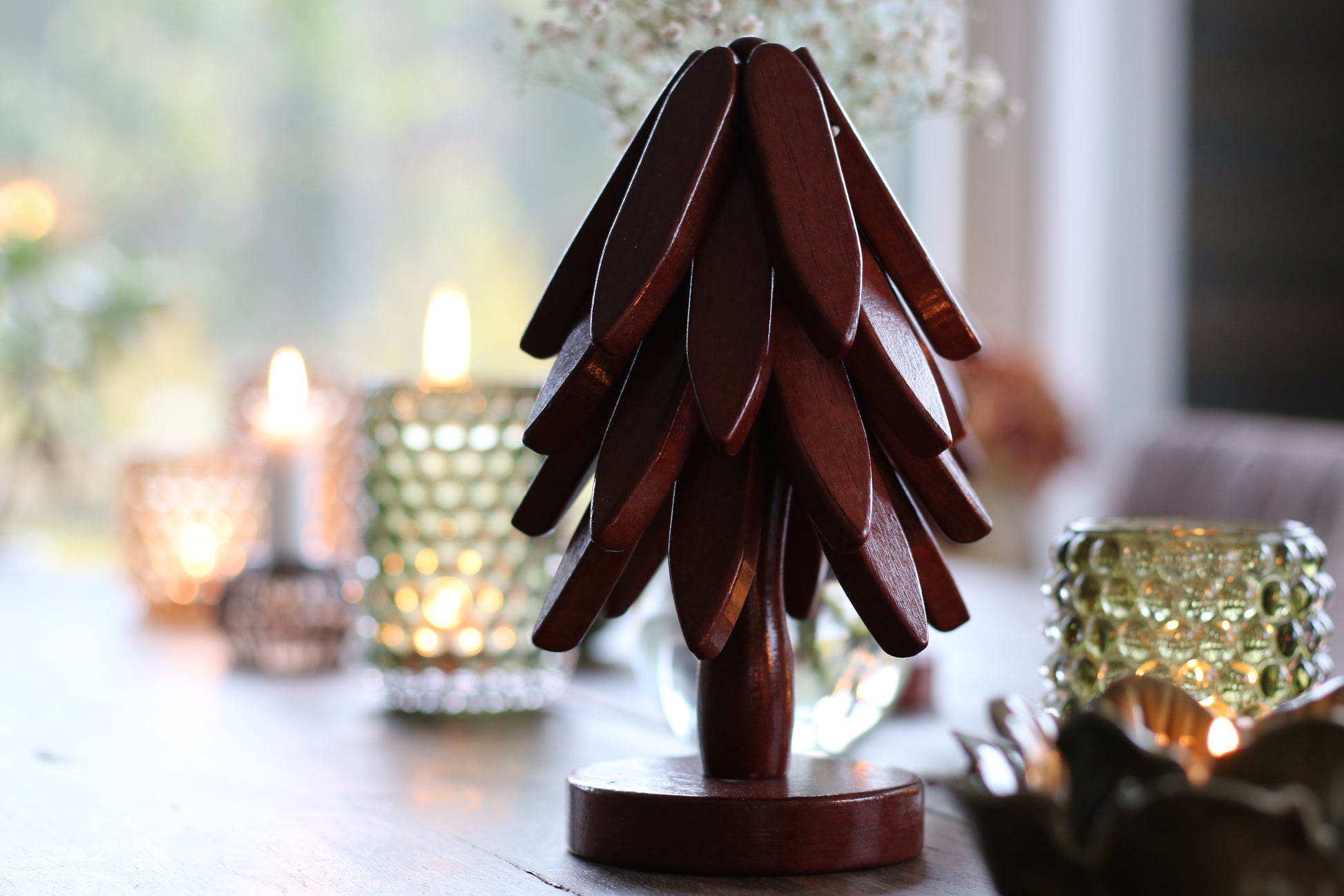 4️⃣ Fyra grytunderlägg – en ståtlig gran